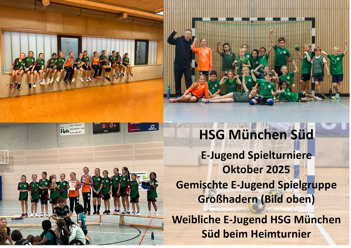 Gemischte E-Jugend Spielgruppe Großhadern erfolgreich beim Auswärts-Spielturnier. Weibliche E-Jugend der HSG München Süd bestreitet erstes Heim-Spielturnier in der Sollner Halle.