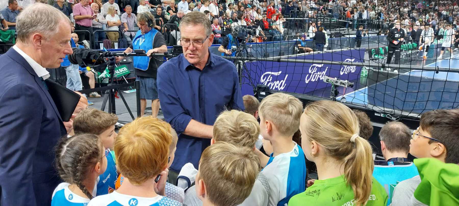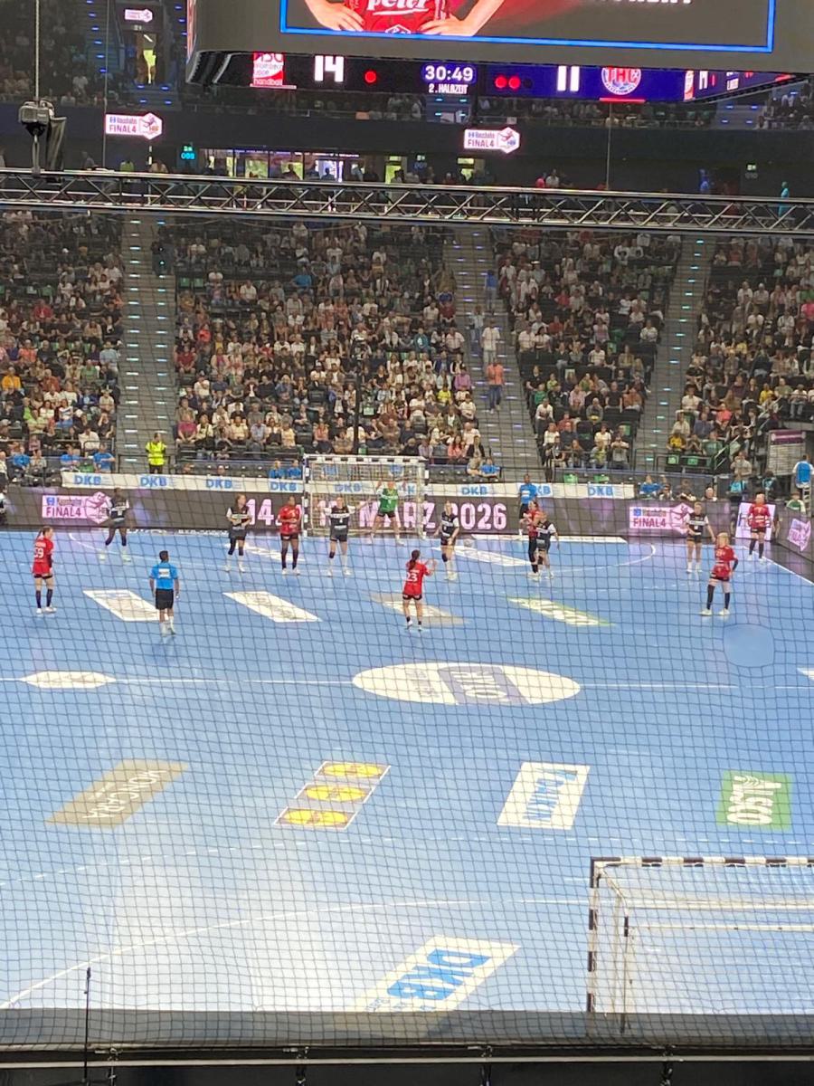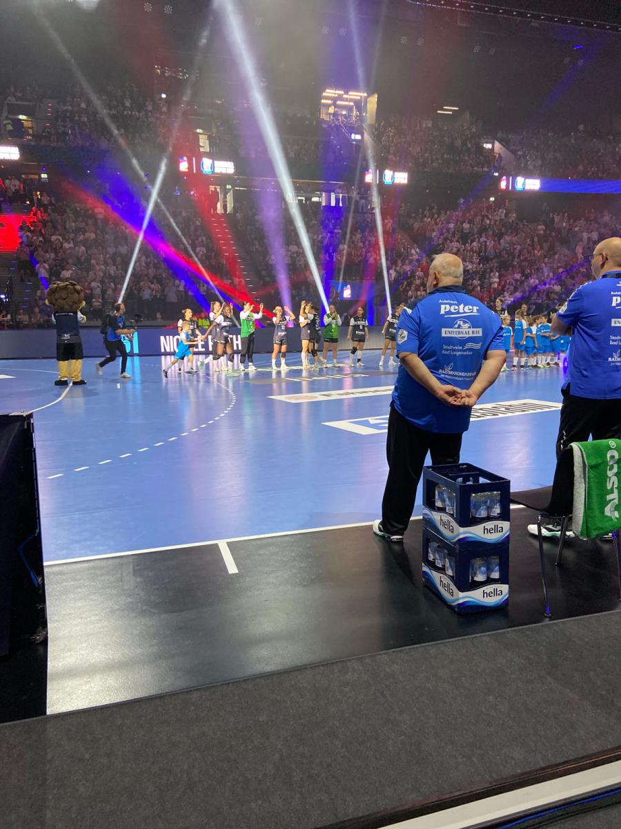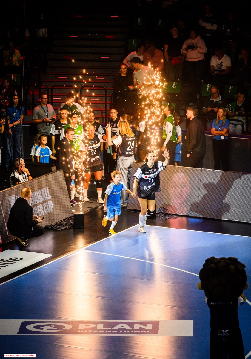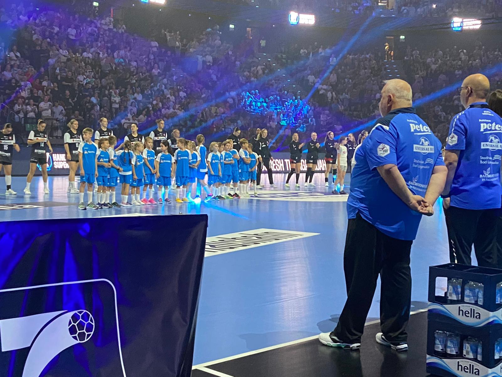 16 Einlaufkinder der 3 HSG-Mini-Spielgruppen und der 3 HSG-E-Jugend-Spielgruppen durften am Samstag, den 23.8.2025 mit dem Damenteam der HSG Blomberg-Lippe mit einlaufen.